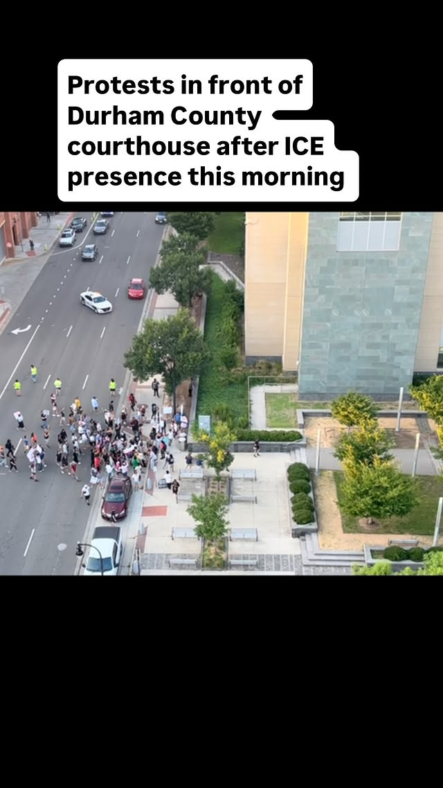 Protesters returned to the courthouse Monday morning to "Protect Durham from ICE", according to one flyer shared by Triangle Radical Events, Triangle Mutual Aid, and Raleigh United Mutual Aid Hub on Instagram. A post by Siembra NC claims an attendance of 150, though the image they share shows only approximately 50: