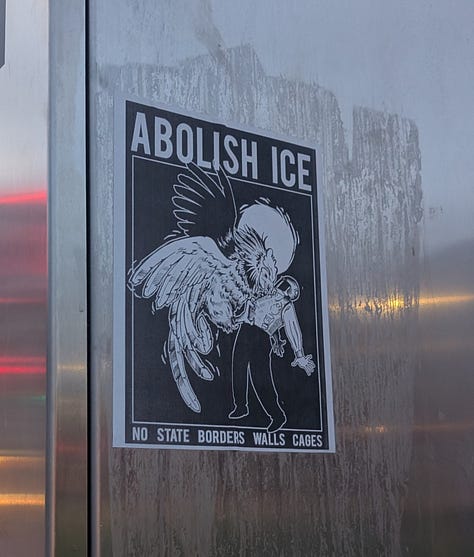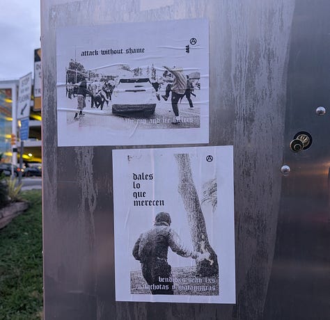 For instance, can you imagine WRAL sending reporters down to cover these anarchist stickers calling for anarchist violent revolution/terrorism which I came across when covering a black bloc demonstration in Durham last June? I think not...
