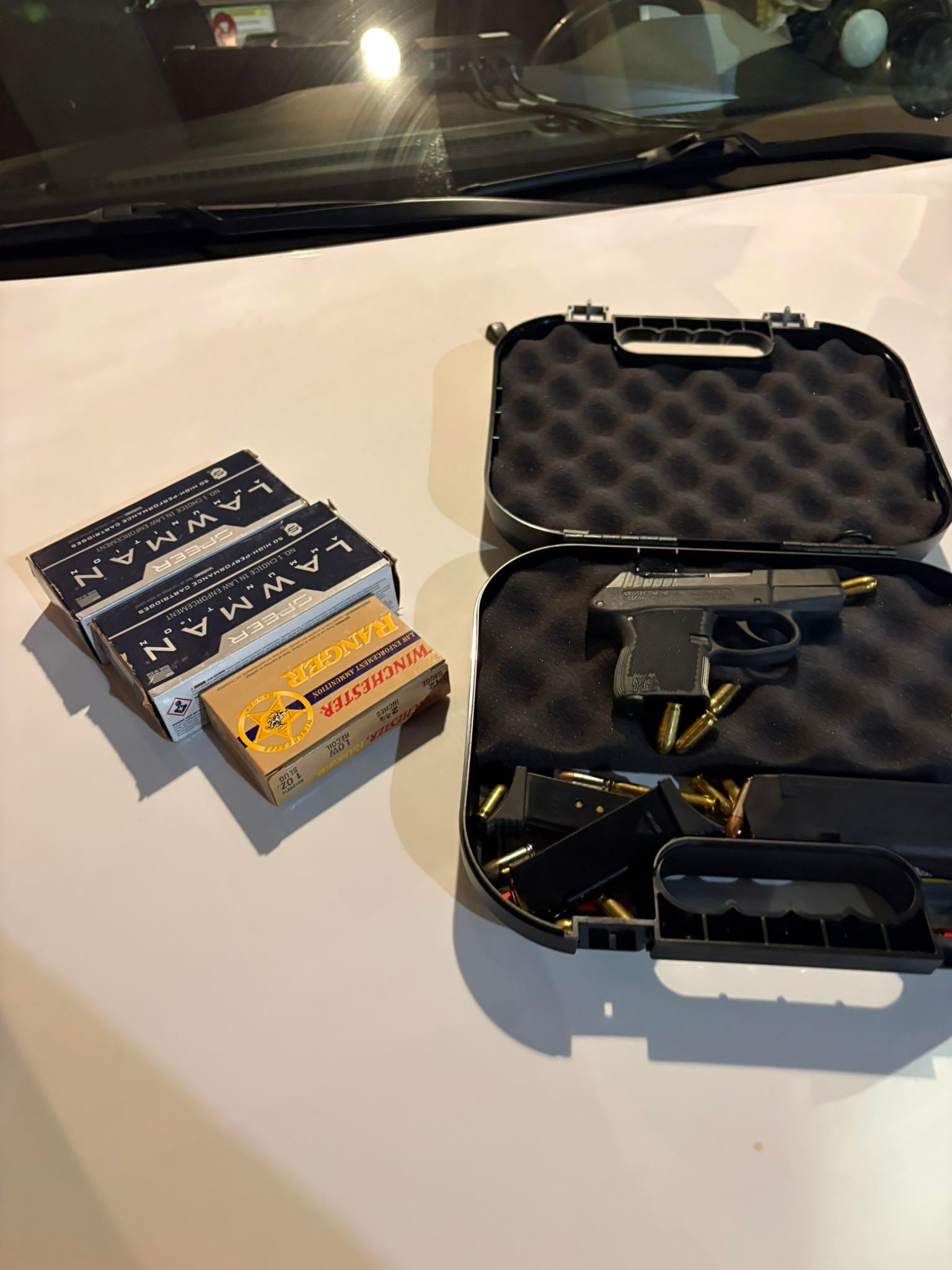 Gillum was relocated and arrested in the same county on Wednesday, with the sheriff department announcing he was arrested at a hotel with a handgun and 200 rounds of ammunition, with a photo showing a rather small handgun with mismatched ammunition: