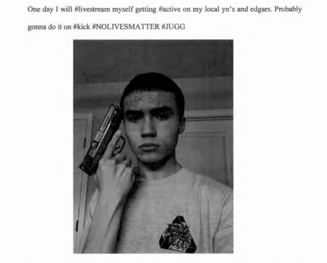 The “concerning Instagram posts” by Byrd in the days leading up to his arrest include one in which he stated his intention to livestream an active shooting targeting “yns” and “edgars,” slang terms referring to subdemographics of blacks and Hispanics respectively. Byrd also used racial slurs in reference to a black former classmate of his at LRHS (presumably Leesville Road High School) named “Isaiah” whom he also sought to murder.