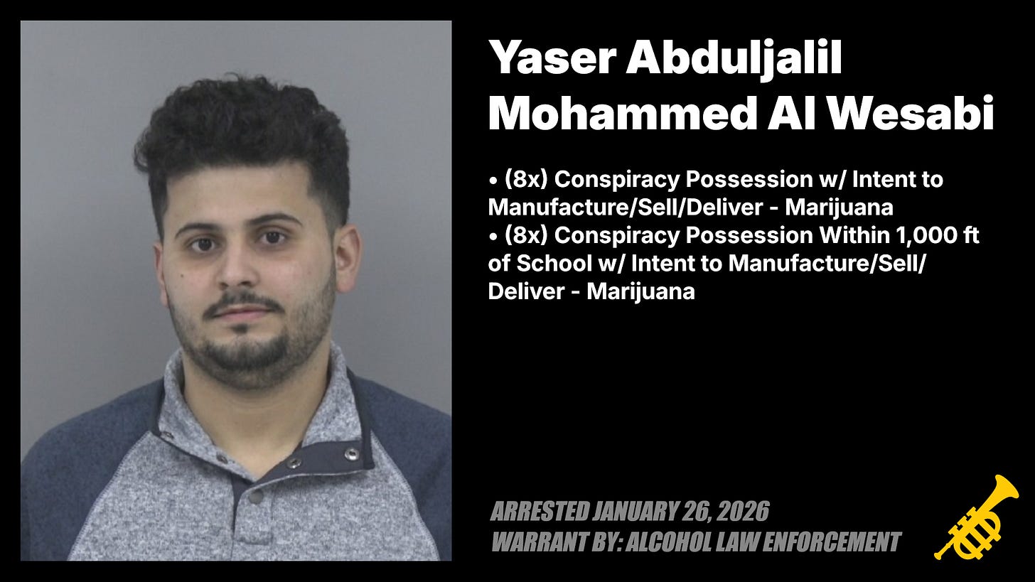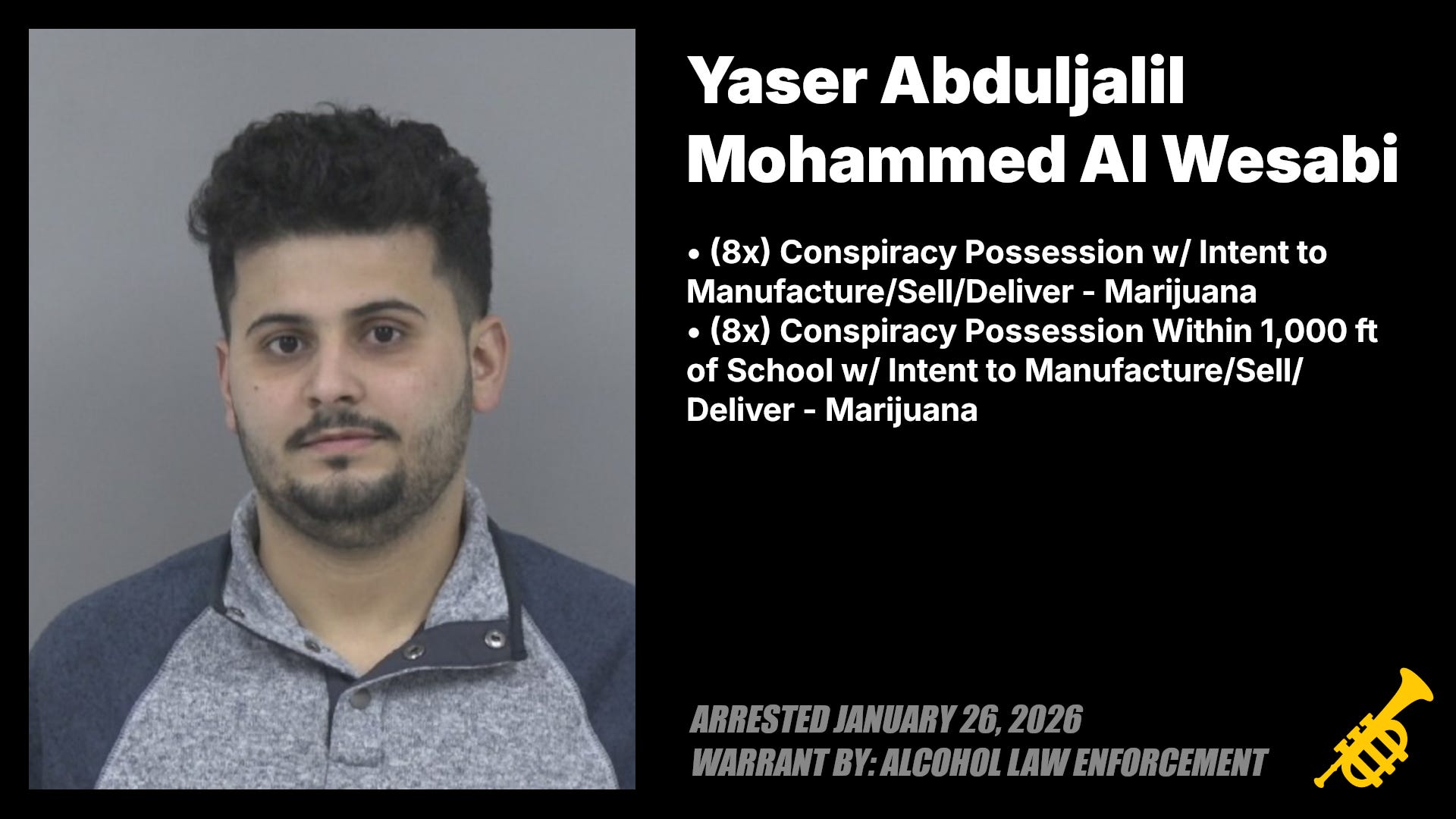 The charges against Almontaser and Ahmed include charges of conspiring to possess marijuana with the intent to manufacture, sell, or deliver as well as the enhanced version of the charge related to the fact that Clayton Tobacco Shop is within 1000 ft. of Clayton High School.