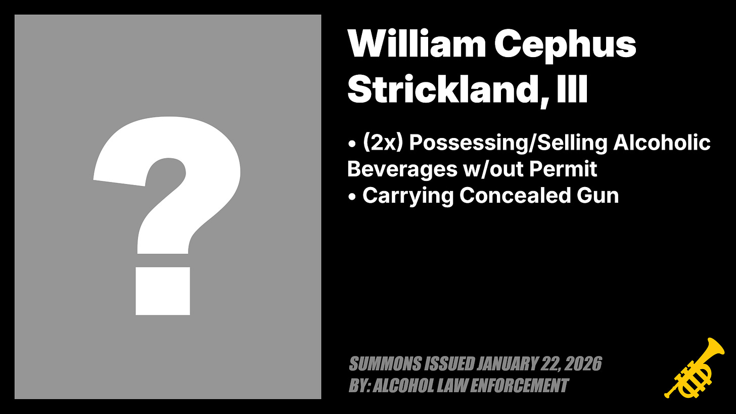 In addition, both employees listed on the returned warrants as being “in apparent control of the premises searched” have been issued criminal summons, with Tristin Lanee Stewart at the Clayton Tobacco Shop facing two counts of selling alcohol without a permit and William Cephus Strickland III at Prime Vape Shop and Tobacco facing the same, as well as a count of unlawfully carrying a concealed firearm.