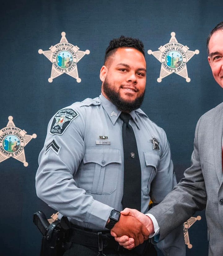 When it rains it pours: a Franklin County deputy also nearly met his end on Thursday night while pursuing a habitual and violent criminal near Louisburg, with only his plate armor standing between Deputy Taylor Lucas and instant death when he was shot “point-blank” in the chest, according to Sheriff Kevin White.